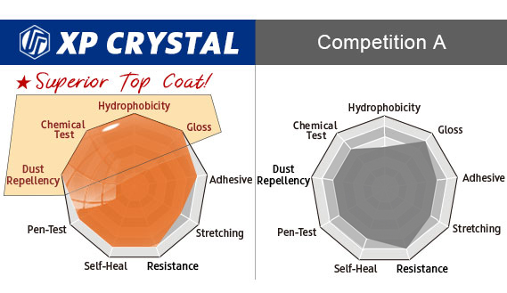 Whether you like it or not, scuff marks and minor scratches will happen to your vehicle. With little bit of heat, XP CRYSTAL self-healing properties will keep the smooth glossy surface of your vehicle like it had never happened.